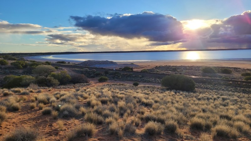Lake Hart Just an overnight stop over in a free camp. Simon happy as he could get down to the railway. Missed the train coming through as it was very early in the morning. Previous Next