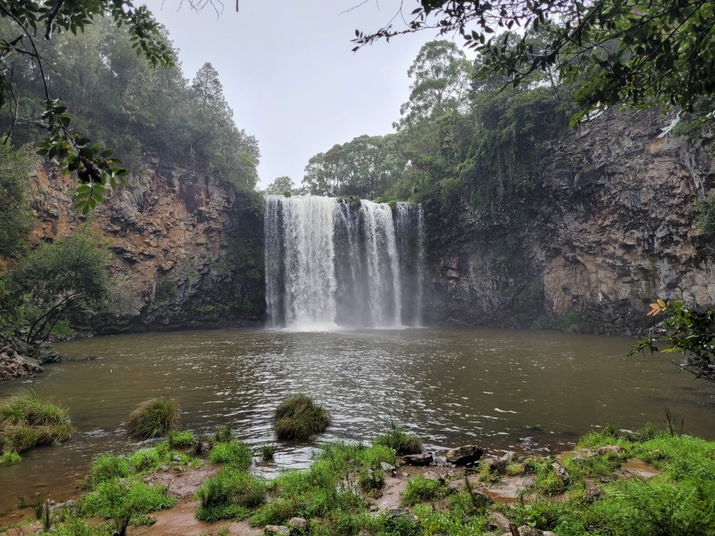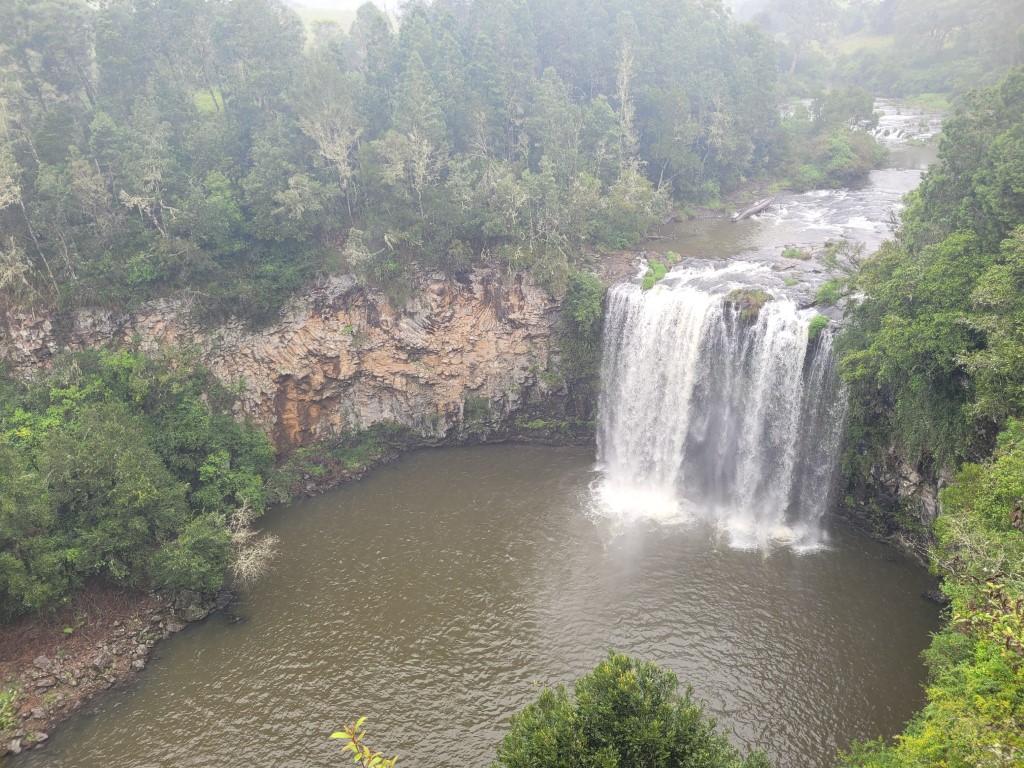 A huge change in the weather the heavens opened, it rained all night and was still raining on Sunday when we went off to see Dangar Falls just outside Dorrigo. Usually you would have amazing views as you climb up to Dorrigo but all we saw was cloud. By the time we got to the falls the rain was easing off so at least we got to do the walk down to them. Really pretty spot. It’s a great swimming spot but today the kids that did go in swimming came out with leeches on their legs!