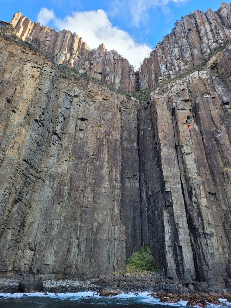 Our first stop was ‘Get Shucked’ to taste the famous Bruny oysters. You can see the oyster boat come in and the guys shucking out the back of the restaurant. They were delicious. We are staying in a free camp just off the beach at ‘The Neck’ which is a narrow strip of land between north and south Bruny. There are usually a lot of penguins here but we are outside the season unfortunately. Decided to take the Bruny Island cruise from Adventure Bay. Luckily it was a calm day as I get seasick, saw lovely rock arches, lots of seals and lots of dolphins. A great day out.