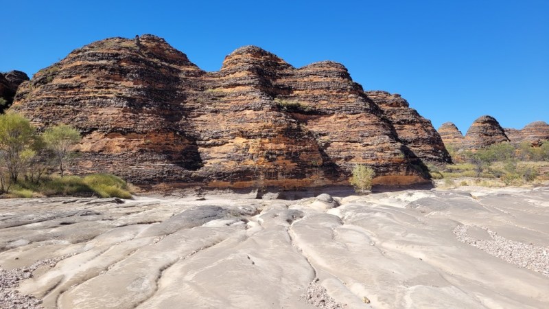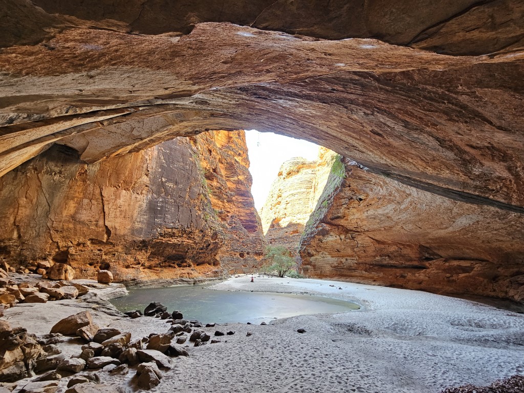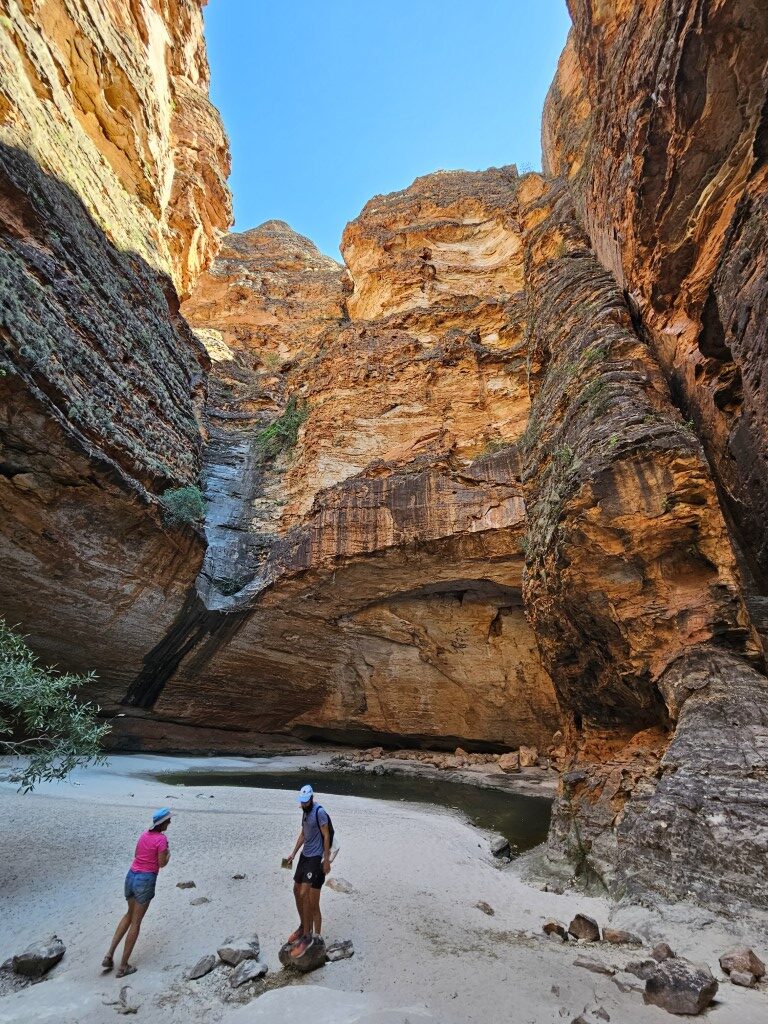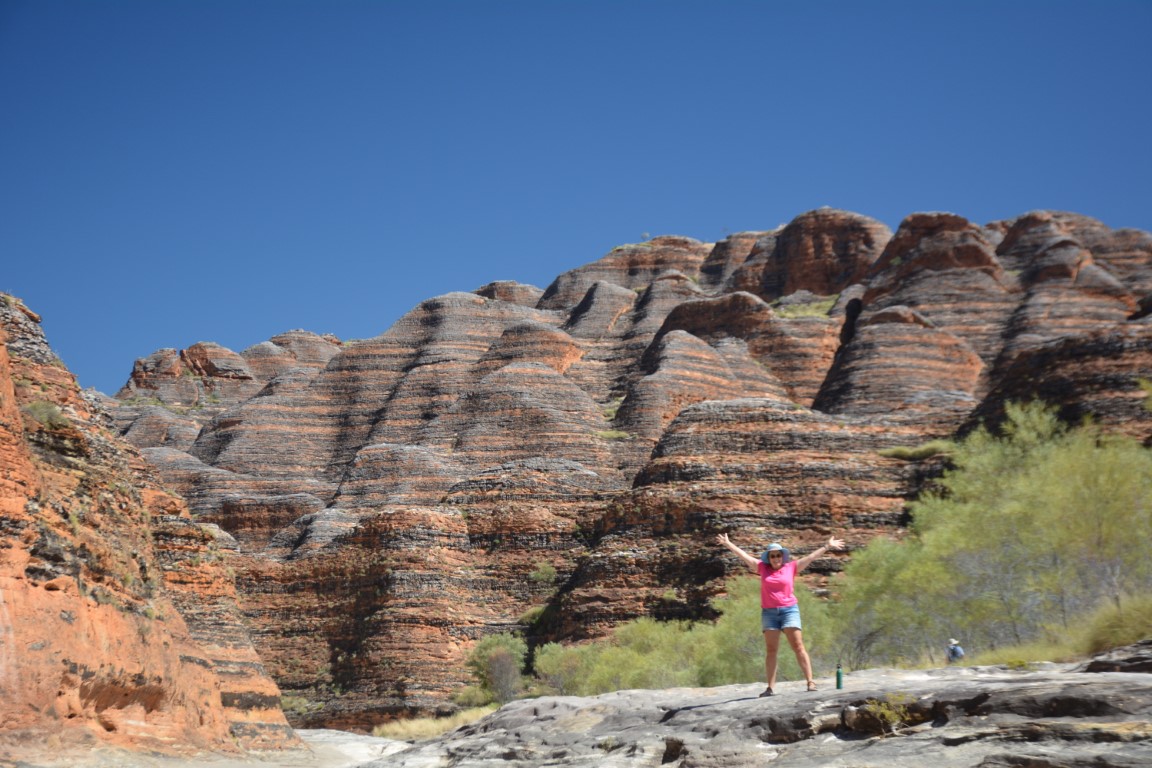 Visiting the Bungle Bungles is not for the faint hearted. For a start they are in the middle of nowhere, over 1100 kms from Darwin and 900 kms from Broome. Once you get to where you turn off the main road to go into the Purnululu National Park there is a car park to unhitch your vans. It’s 4WD only. You then drive 53 kms to get to the visitor centre which is an unsealed corrugated road with at least 8 water crossings. It takes 2 hours due to the state of the roads. Once you get to the visitor centre you think yes we are here but no they tell you its another 19kms which takes another 45 mins. You then arrive at Picannini and from there its a 7.5km return walk to see the Window, Cathedral Gorge and the Domes. It’s winter and its 34C and the only shade is in the Cathedral Gorge. Was it worth it? Absolutely probably one of the most amazing places I have ever visited in my life.