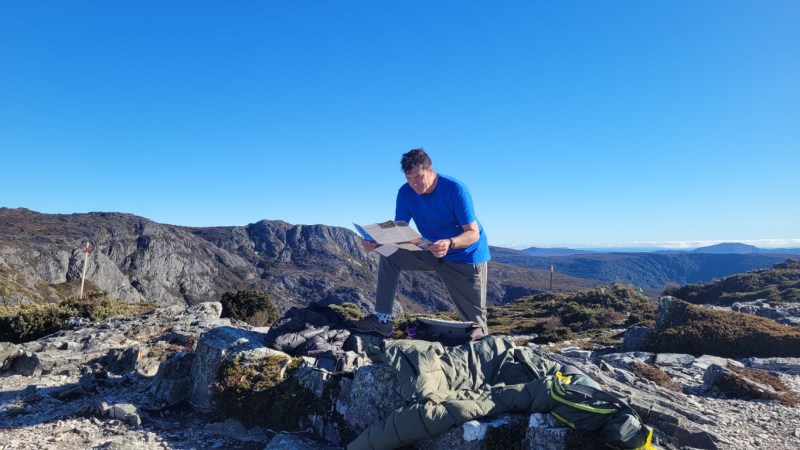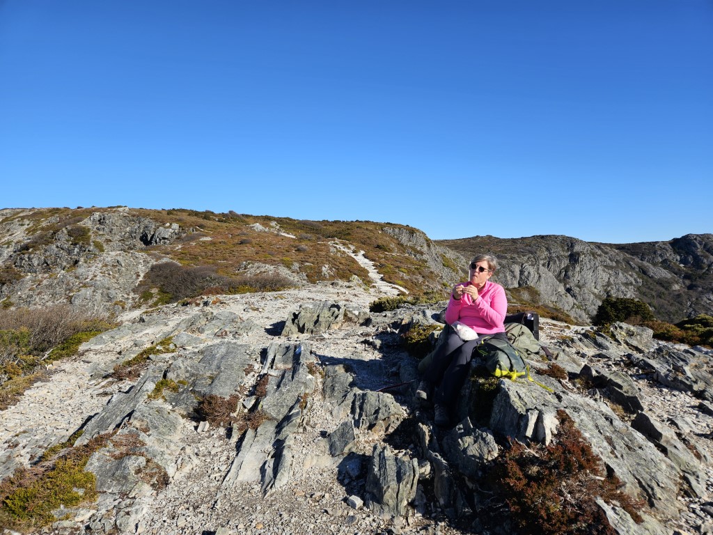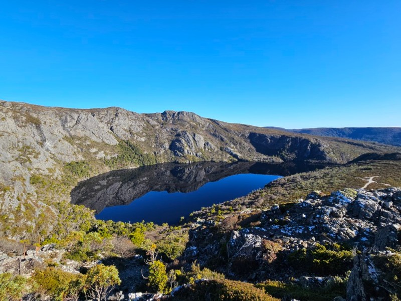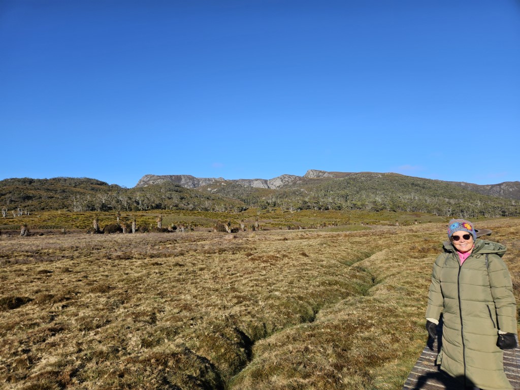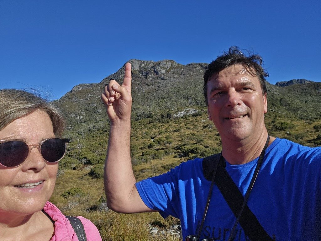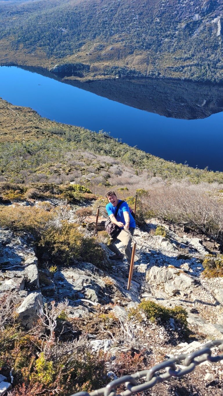 Simon and I did the Overland Track up to Marion’s Lookout around Crater Lake a very good workout. In one section you have to pull yourself up on chains as it is so steep but worth it as the views are amazing. Decided to come down the quick way which was even steeper with lots of chains.