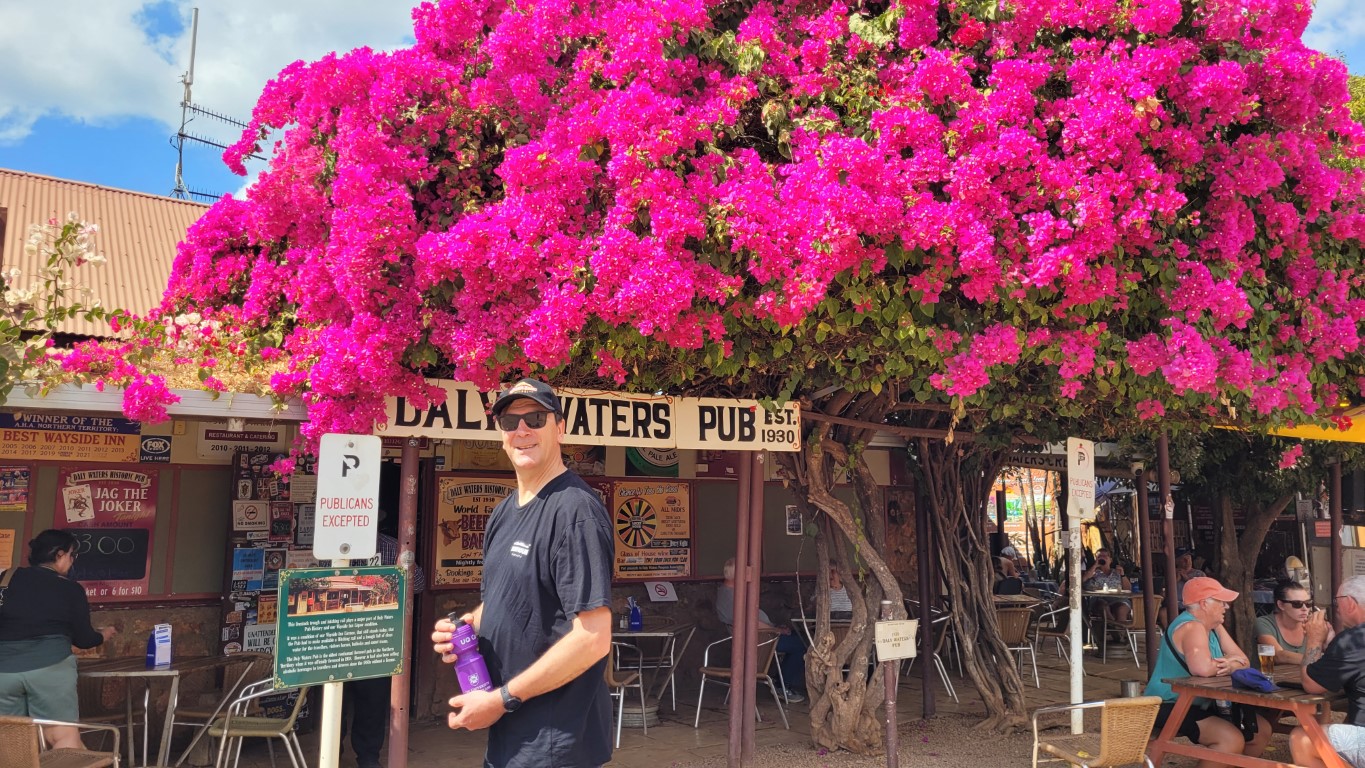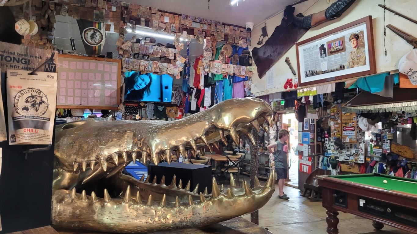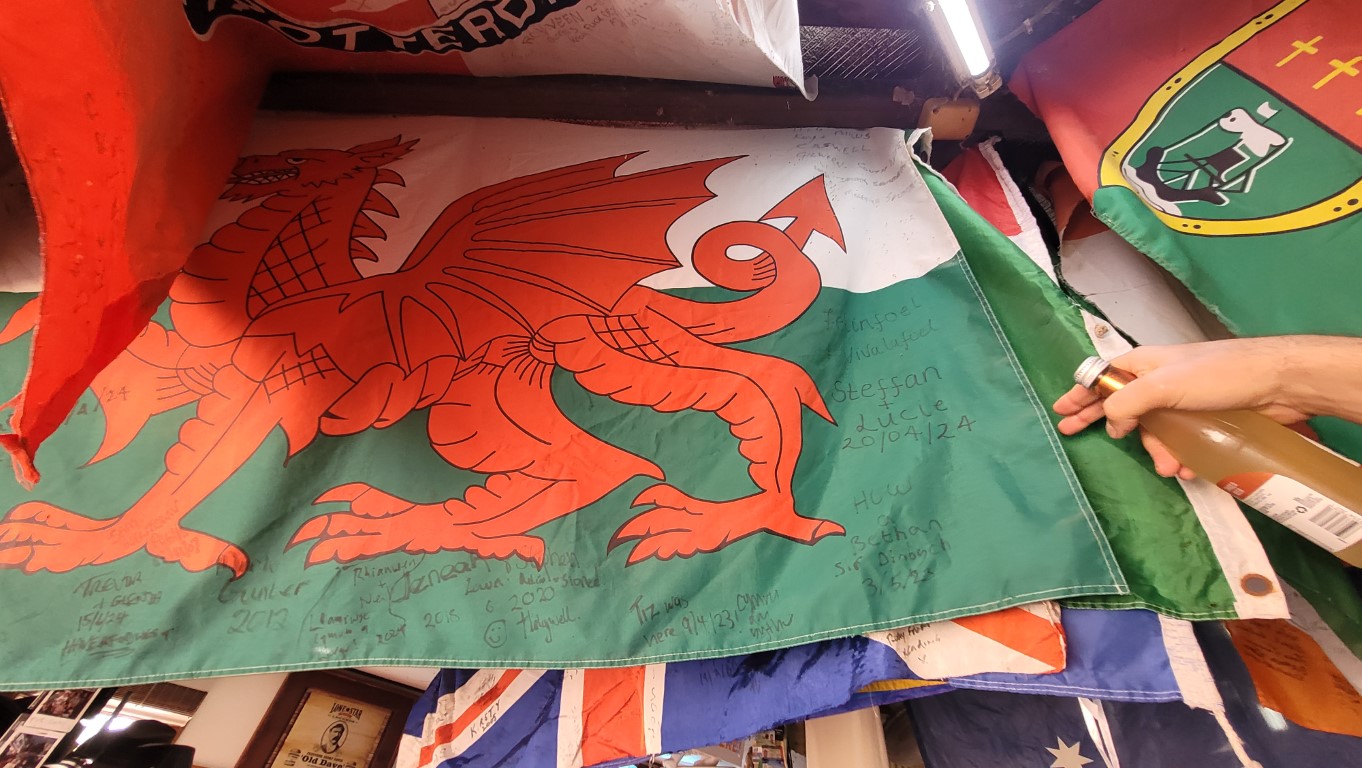 Stopped off for lunch at the famous pub. The whole road leading up to it is littered with old cars, helicopters, planes etc. The place was hectic, literally hundreds of caravans. The pub is chock a block of memorabilia, they had a Welsh Flag hanging up. The bar is covered with bras, drivers licences, ID cards you name it, it’s there.