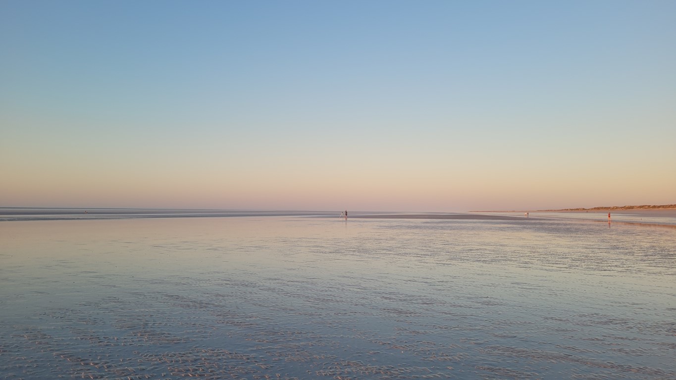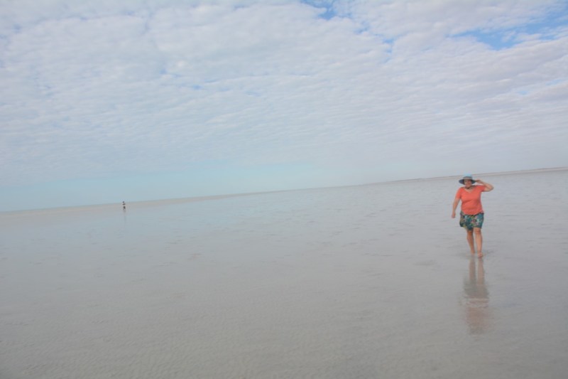 Yes its just like its name says an eighty mile beach and at least a kilometer walk to the sea when the tide is out. You can see nothing but sea and sand as far as the eye can see. Only one problem, no swimming lots of jelly fish, stingers, sharks and crocs according to the signs. Didn’t see anyone in the sea at all. Amazing number of seashells everywhere and lots of beautiful sunsets here. One day we had 50km winds and this combined with the coarse sand made me feel as if I had been sandblasted, a complete exfoliation free of charge!