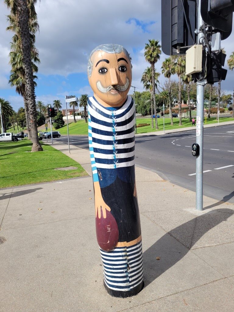 Geelong is a great town I really liked it. There is a lovely waterfront with swimming areas, big wide streets, a botanical garden and a very funky library and art gallery and an amusing bollard walk which goes from one side of the bay to the other and each bollard is painted with some person or a group of people to do with Geelong’s history. A fun way to explore.
