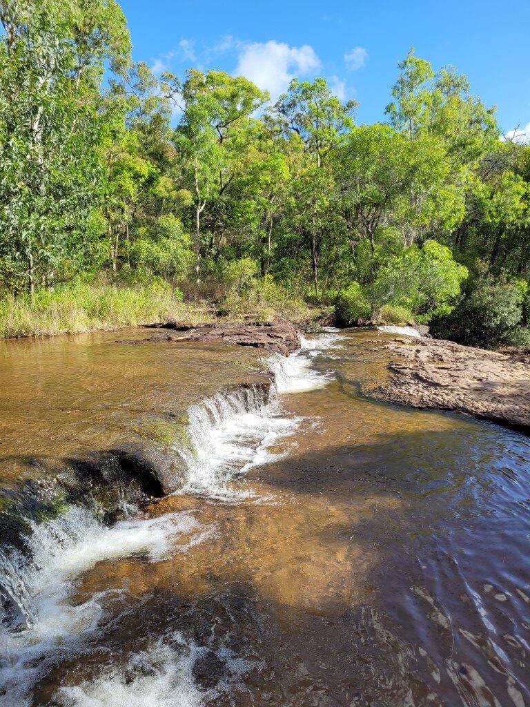 You can swim at the falls no crocs probably too high up. The road from Laura here was amazing so picturesque, beautiful forested hills. Had a wash in the river so nice to get the dust off. Lovely hearing the waterfall at night slept like a log. We are both very relieved to be out of the corrugations they were terrible much worse than I had anticipated but we made it.
