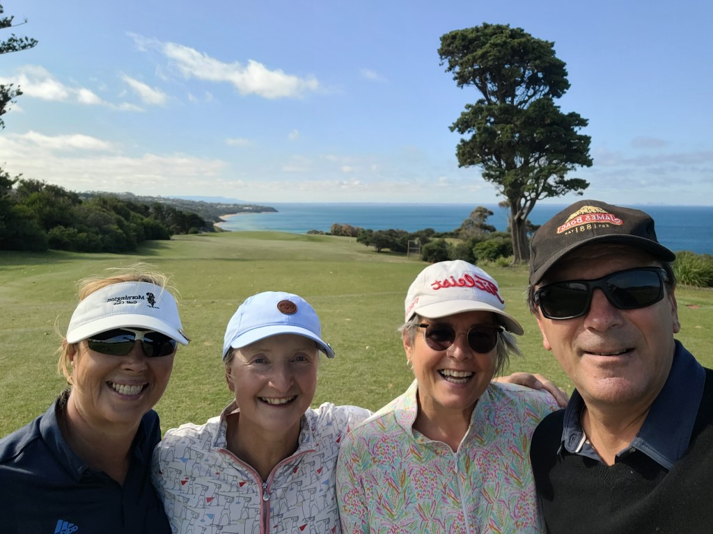 We then had a week of catching up with friends. Played golf with a school friend Connie at Mornington Golf Club where she is the ladies captain. Fantastic views of Melbourne across the Bay.