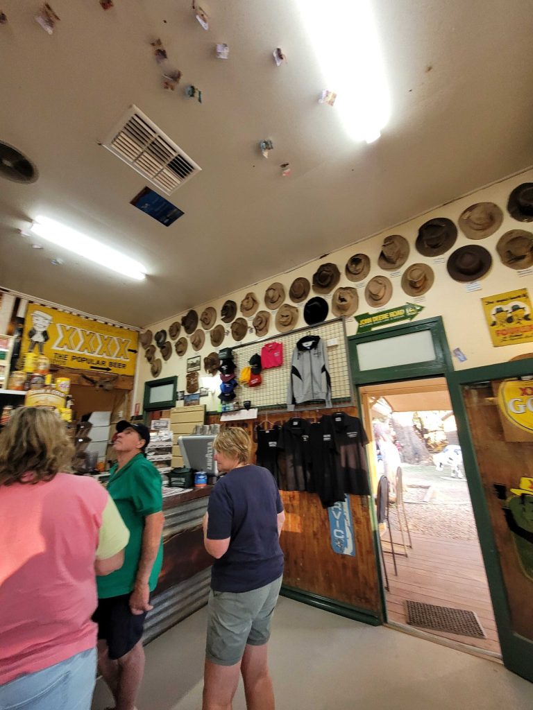 Most of the pubs in country Qld allow free camping as long as you have a drink at the bar. What great marketing idea. Every afternoon at least 50 vans turn up go for a few drinks some have meals and the place is empty again by 10 am until the next lot start rolling in. We were one of a few who stayed longer than one night. They have a great set up here at Nindigully with live music at weekends, a massive beer garden, open fire and happy hour 4.30-5.30pm. The pub interior is decorated with memorabillia, one wall with all different hats and there are notes pinned all over the ceiling. Nindigully is the home of the famous “Road Train” burger which feeds 4 people. It’s a 1.2kg burger and sides. They also do Mega Burgers which you have to order 3 days in advance because they are served on specially made novelty shaped bread roll from a local baker in St George. The biggest burger is “The Real Big Mack” which is 25kg beef burger which is over 5 ft long and serves a whole bus for a mere $600!