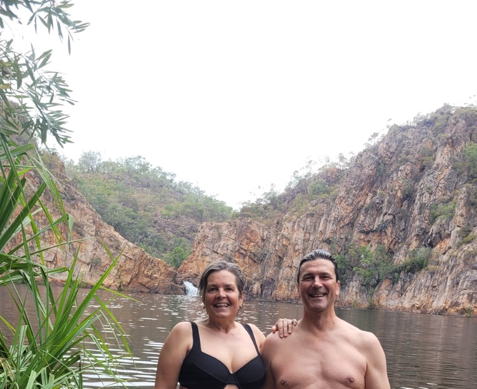 We then moved on to Leilyn or Edith Falls where there is a massive swimming hole with a waterfall. This water was a bit fresh after the thermal pools but very refreshing. Swam across the waterfall, it was great it you didn’t think about the fresh water crocs in there with you. Didn’t see any thank goodness.