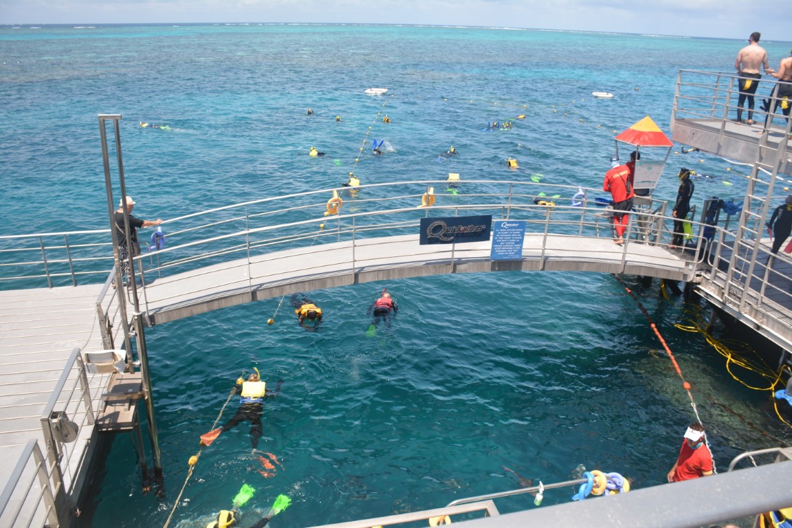 We decided to do the reef cruise from Port Douglas rather than Cairns as they go to the Agincourt Reef which is meant to be one of the better ones. The reef is 72 kilometres out to the very edge of Australia’s Continental Shelf. The Agincourt ribbon reefs are a small group of reefs running parallel to the Continental Shelf. We booked on the Quicksilver Cruise it is a massive boat and one of the fastest in the marina. It takes nearly 1.5 hours to get out to the reef. Once out there there is a pontoon where you can do all your activities from. We got into our stinger suits very flattering. The guy handing them out gave me an XXL which I though was a bit of a cheek there were lots of people bigger than me there and he gave Simon the same size. Well needless to say I had lots of extra material, took me a while to find my feet and hands.