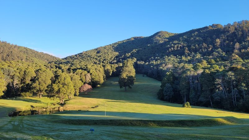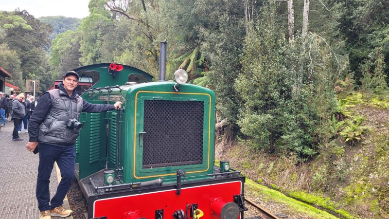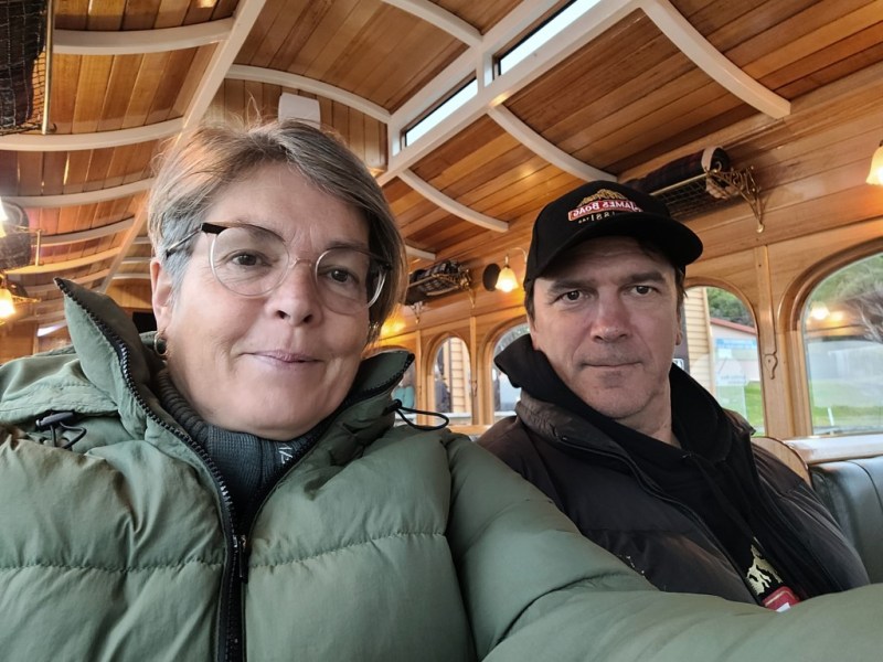 Stayed at the Rosebery golf course for two nights. The golf course is 9 holes and is the steepest golf course in Tasmania. Went on a day trip to Strahan to go on the Wilderness Railway. Obviously Simon was in his element as we were one on a train, two we had a little balcony off the back of the carriage where you could stand to take photos and three they gave us bubbly and nibbles. He was in heaven.