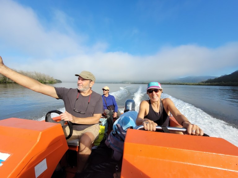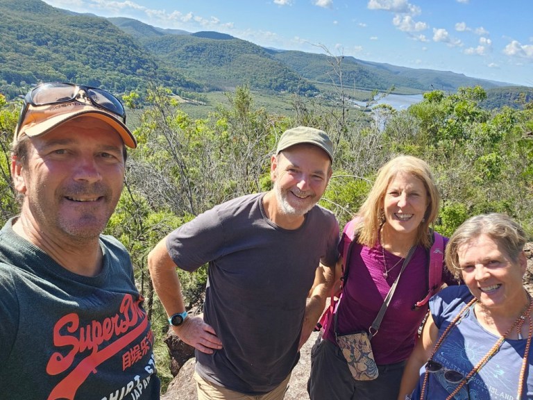 Left the caravan for three days and went across to Scotland Island where our friends Mel and Mike live. Stayed one night at their house before setting off on our camping adventure. We had a very full boat as we set off up the Hawkesbury River. We camped in the Mara Mara National Park at Gentleman’s Halt. A bush camp, no water you had to bring it all in but it did have a drop toilet. Set up our tents and went off for a walk to the salt marsh where there was lots of samphire growing and an old stone jetty. Climbed to the highest point which was approximately one kilometre up a really good workout with some beautiful caves. I wasn’t so keen coming down as I don’t like heights and there was a lot of loose stones. Simon was in his element with a camp fire. Lots of monitor lizards here so you had to make sure all the food was locked away as they would investigate.