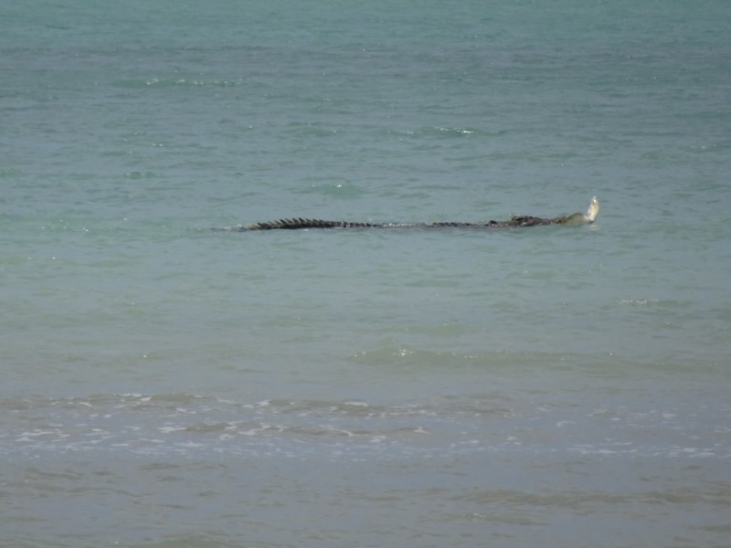 On our first day we saw a 3m crocodile swimming across the bay and about an hour later he came swimming back with a turtle in its mouth, the poor turtle was flapping its fins the whole way and then he disappeared into the mangroves.