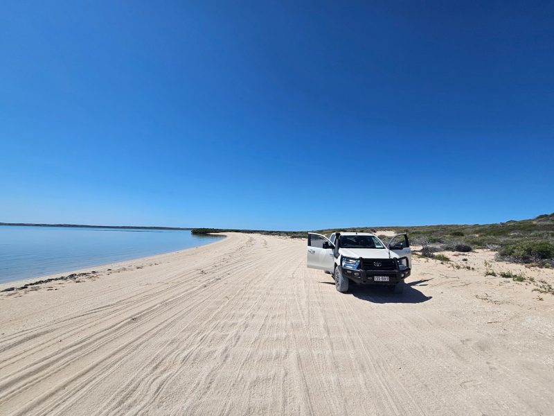 Some of the dunes we had to drive up were very steep, there would be no way we could have made it towing anything let alone a 2.5 tonne caravan. It was fun though! After the dunes we came out onto a beautiful beach before heading inland again. Stunning scenery.