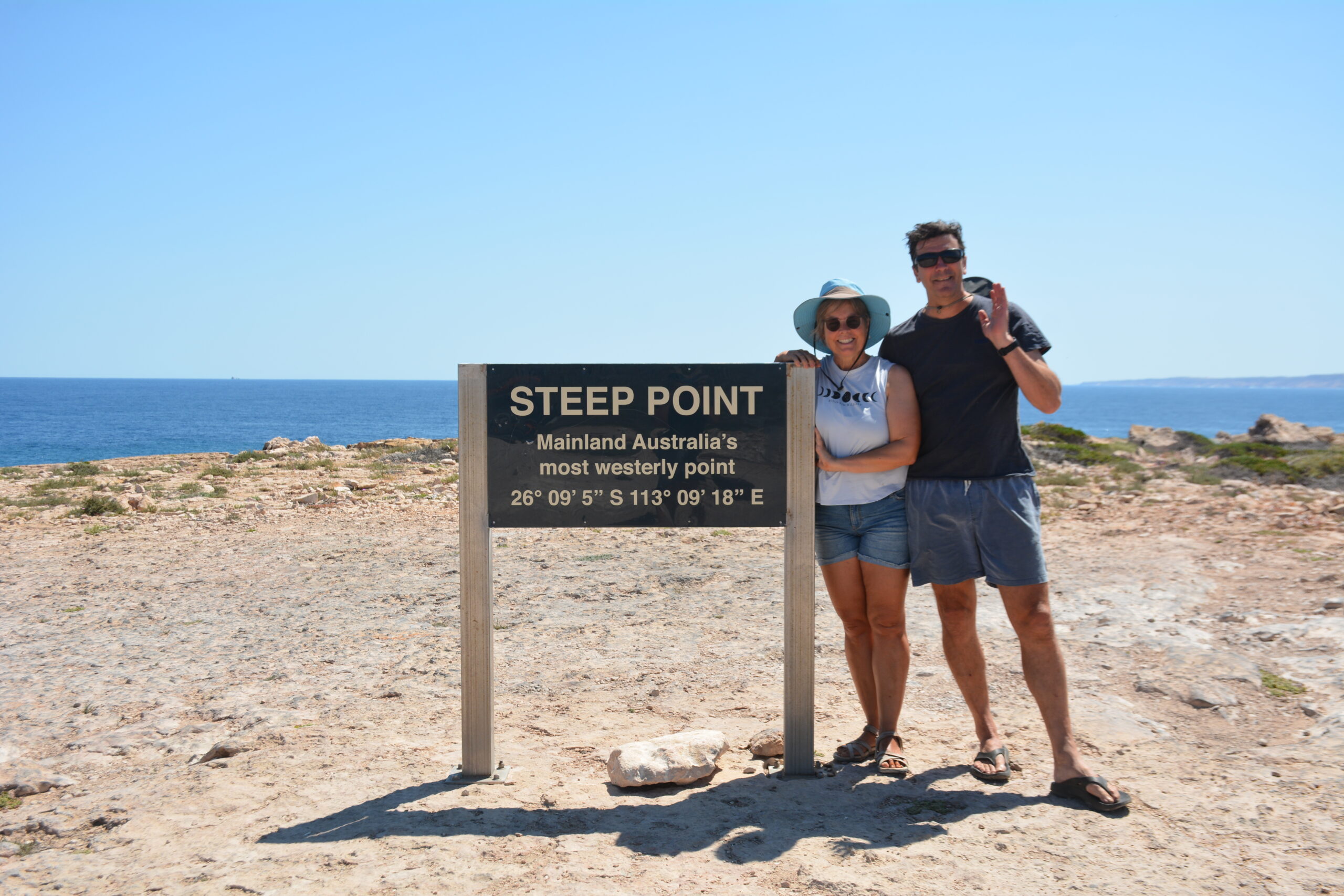 This is the most western point of Australia and the last point of the compass for us to complete. It was 125 kms of 4 wheel driving so we left the caravan in a layby. Simon set off running the first 15kms at 7am before it got too hot. He had to wear a fly net as there were so many flies. I followed half an hour later to do my water drop off duties before driving on to meet him at the 15km mark.
