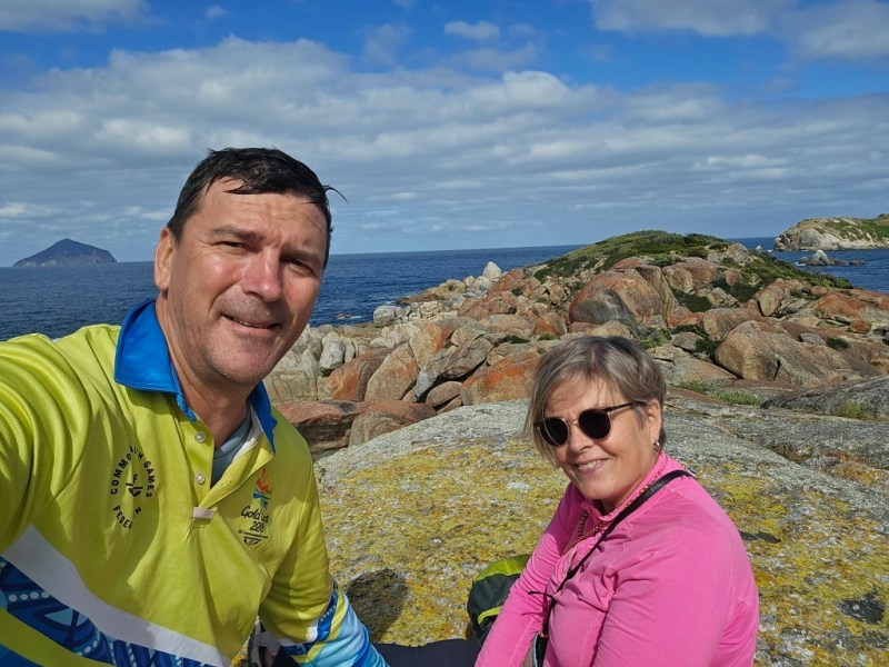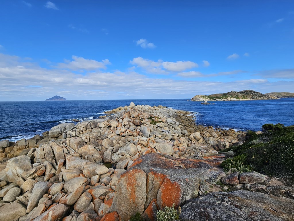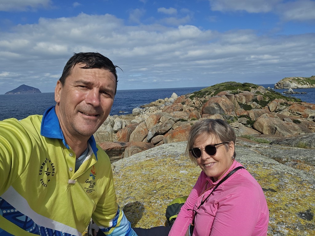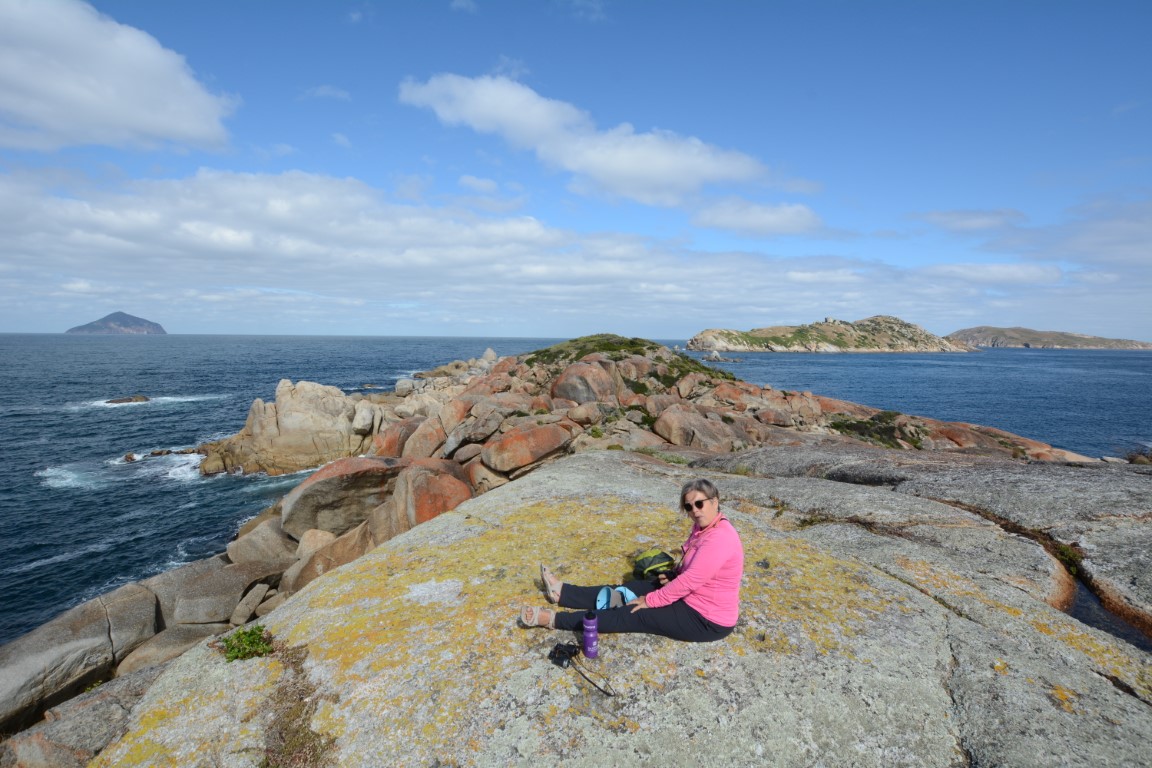 Stayed at Yanakie a campsite near to Wilsons Promontory National Park. Saw my first live wombat in the wild, unfortunately the first two were dead at the side of the road. We walked to the South Point the most southern point of mainland Australia. It was all through the national park and it was a 30km round trip. We had to carry in our food and water for the day. The walk down was not too bad the first 3kms were down hill. We stashed some of our water in various places so we could pick up on the return journey. Stopped off at Telegraph Station and then at Roaring Meg’s. The track from Roaring Meg’s to South Point was a single track with a few little creeks and boulders to cross. The view was well worth the journey. Really lovely red stained rocks. The return journey was much harder especially the last 3kms up hill which was a killer. We didn’t stop from Roaring Meg’s back as I was convinced if I sat down I would seize up completely. We completed the 30kms in 7 hours and 30 mins. Not bad, I was happy with the time.