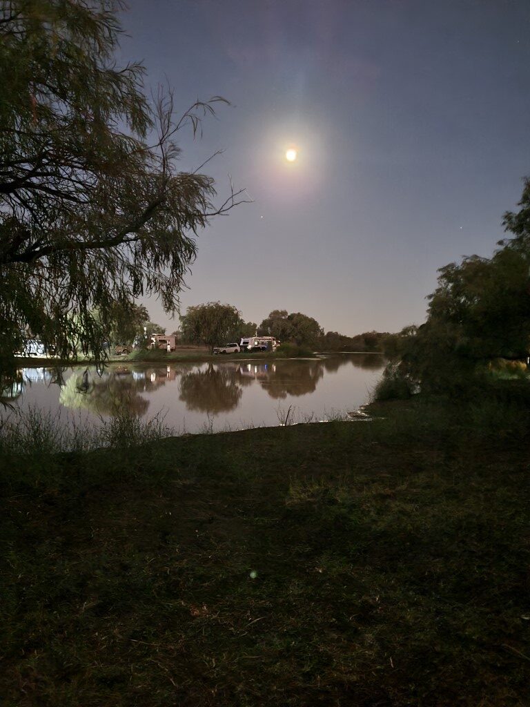 We free camped at the Long Waterhole a few kilometres outside Winton. A lovely spot on a waterhole with lots of birds and cows wandering about. There are sometimes emus but we didn’t see any.